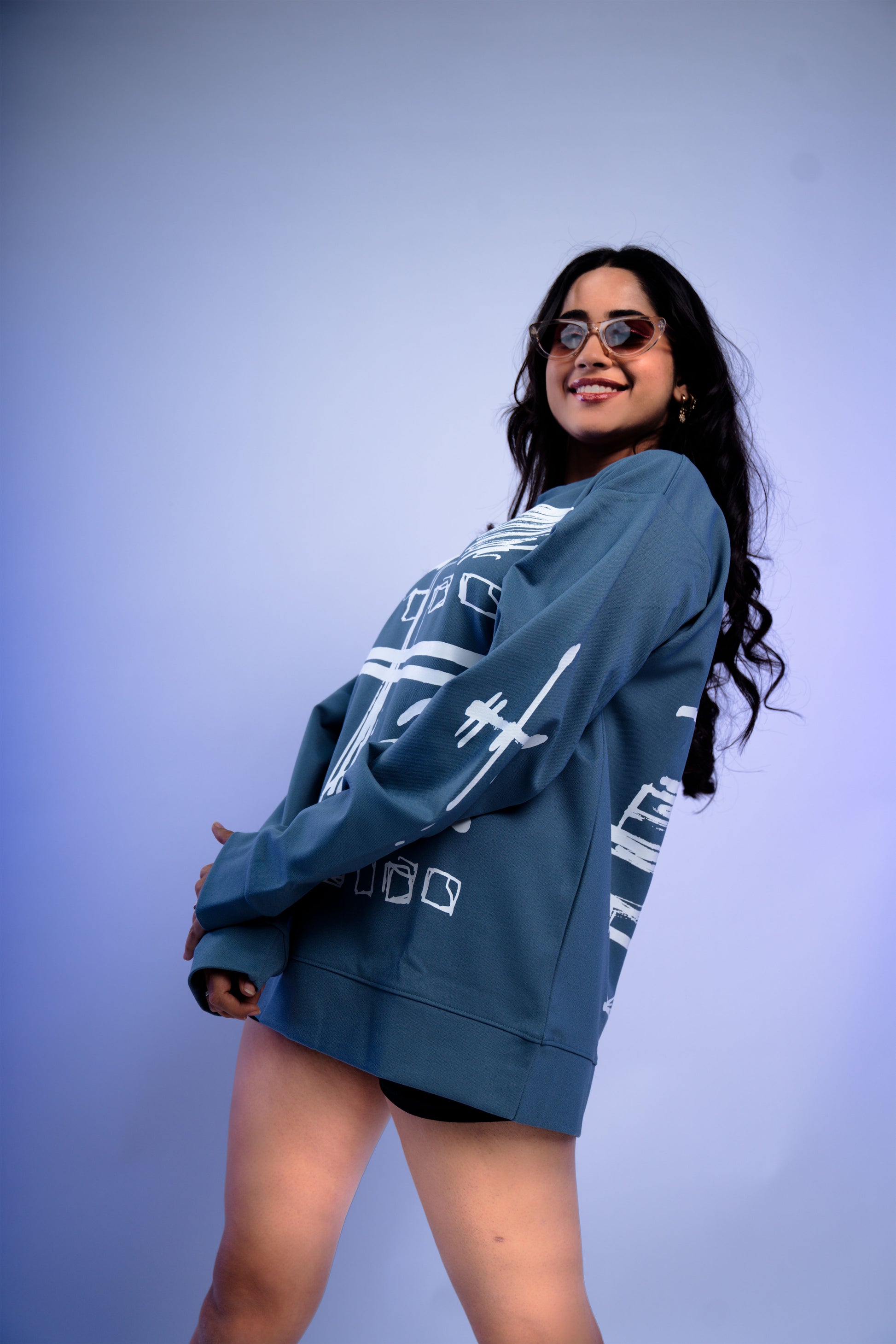 Our abstract blue sweatshirt is a unique and stylish piece that combines simplicity with artistry. The design features an abstract pattern of different shades & strokes of white, creating a mesmerizing and dynamic visual effect that is both eye-catching and sophisticated.