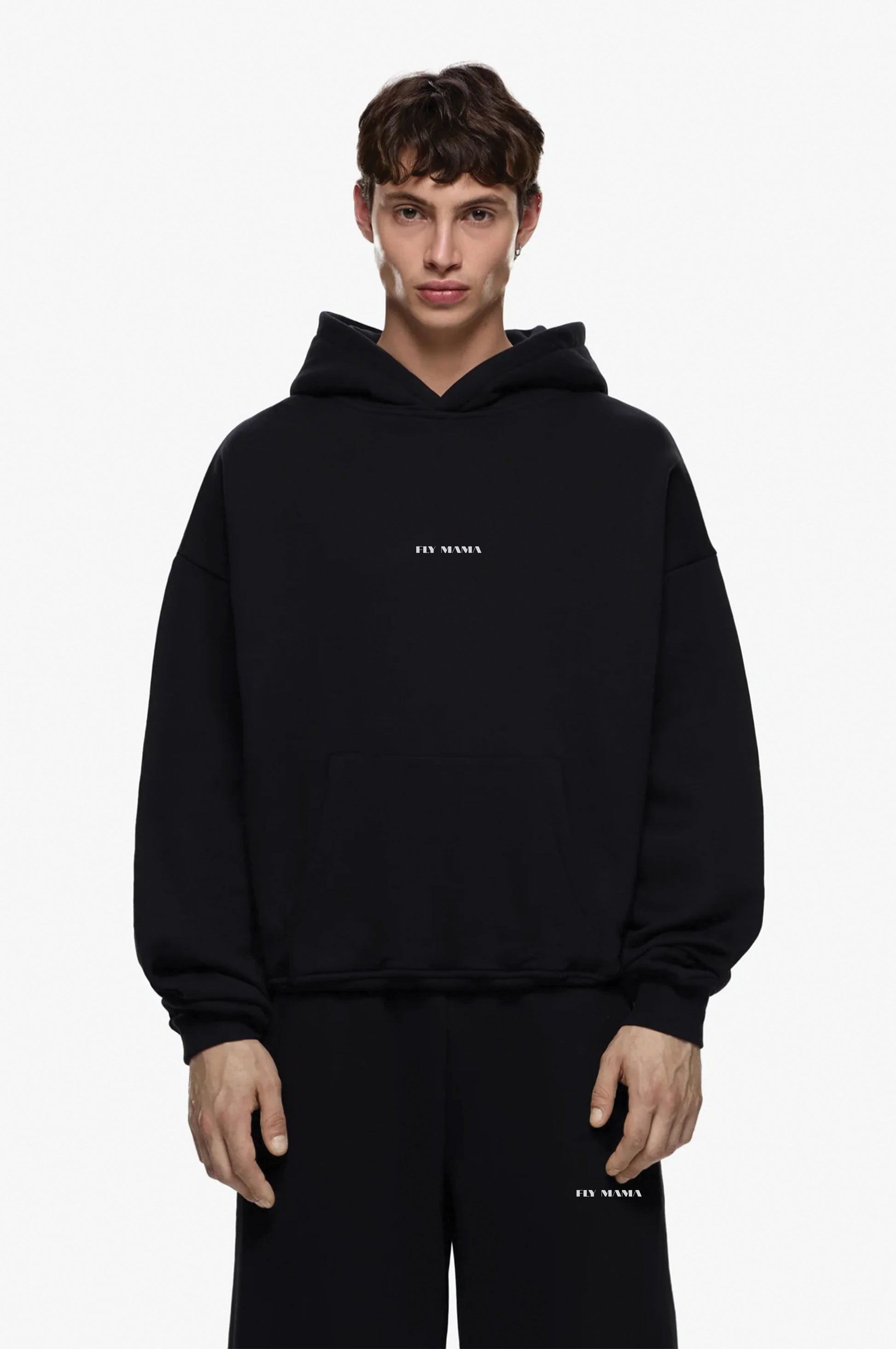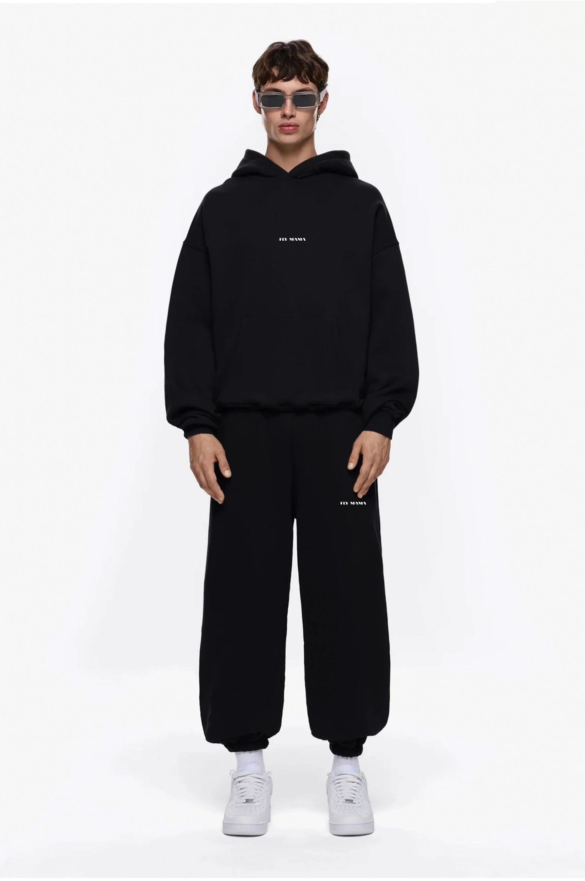 Crafted from 100% premium heavy cotton, this timeless set redefines everyday luxury. The deep black tone radiates effortless style, while Fly Mama across the hoodie adds a subtle yet bold edge. Paired with wide-end lowers featuring minimal branding, it brings the perfect balance of comfort, structure, and statement. With Fly Mama’s signature on the hood, this co-ord is made for those who believe in keeping it classic, premium, and unapologetically real.