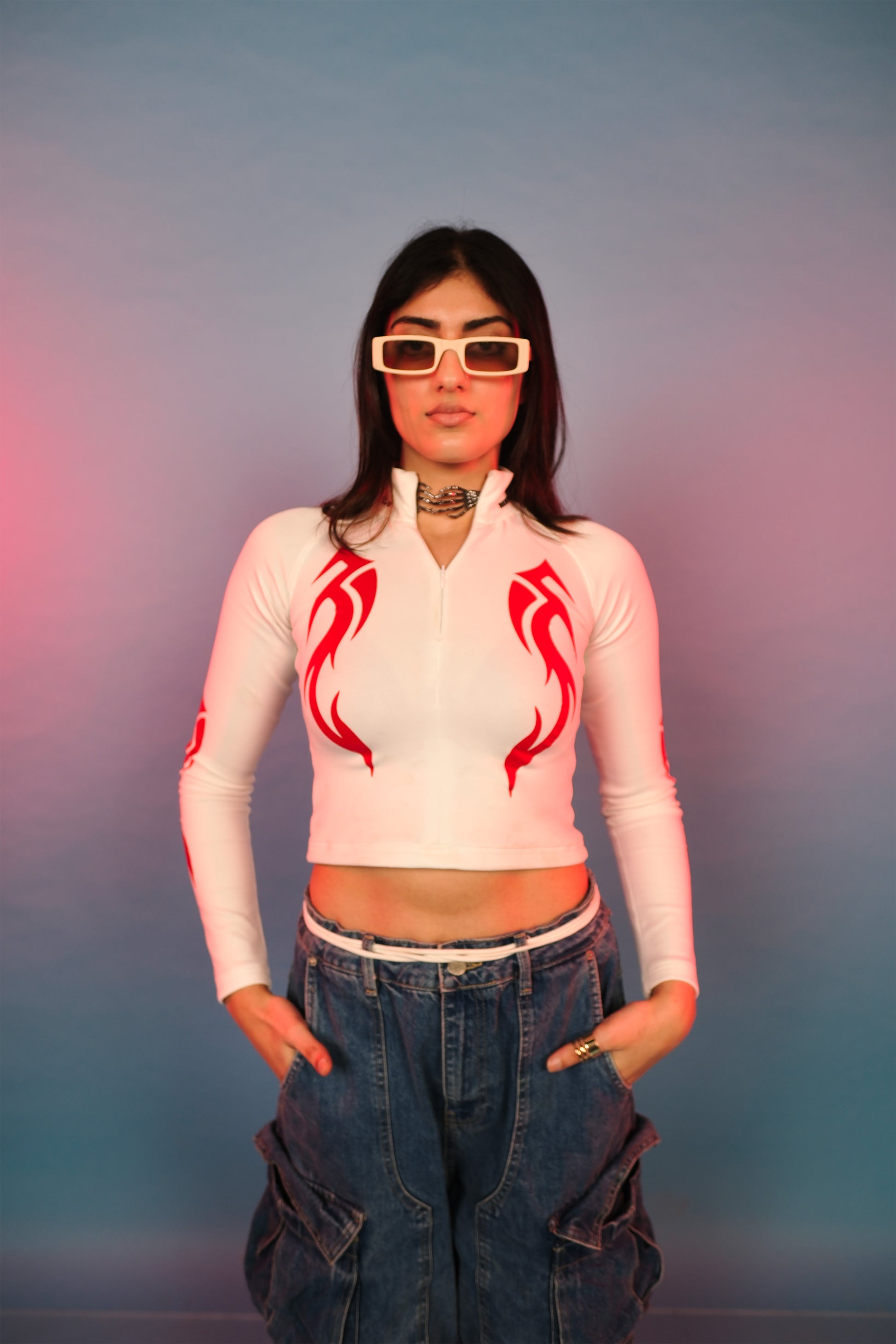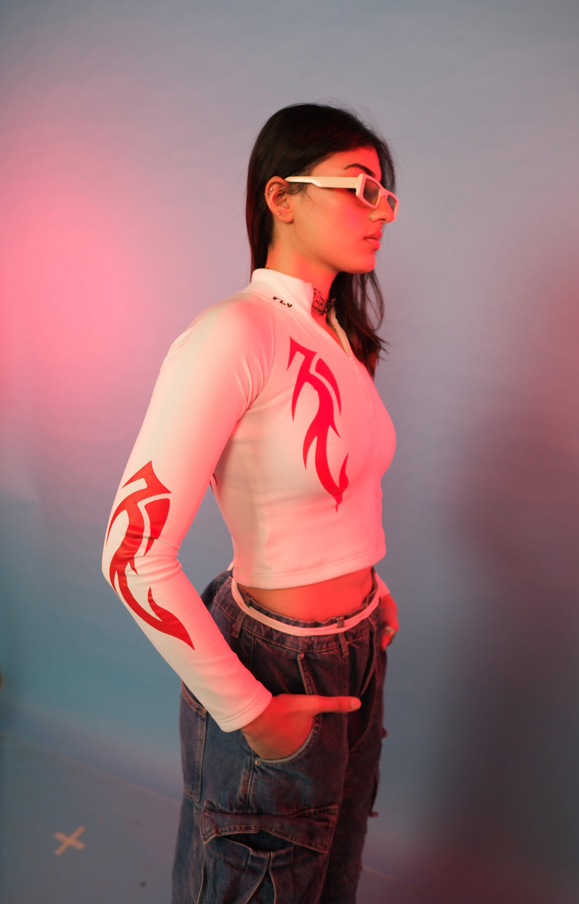 Embark on a journey of elevated style with our latest product launch, the "Crimson Soar Zipper Jacket" from Fly Mama's high-end streetwear collection. Designed exclusively for women, this half-zip jacket is a testament to the fusion of fashion and functionality.