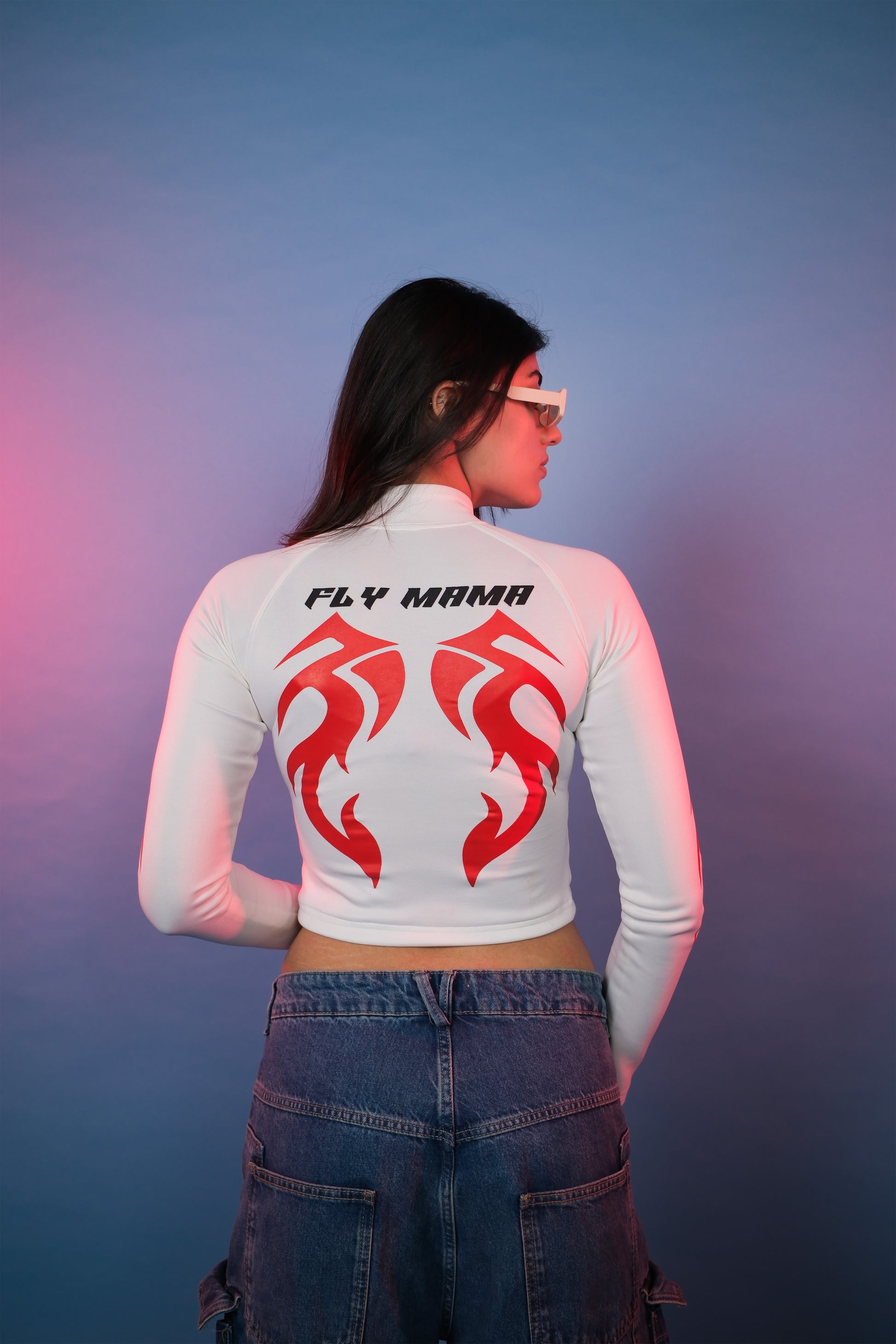 As a finishing touch, the iconic "Fly Mama" is elegantly embroidered on the back, a signature emblem of confidence and empowerment. It's more than a garment; it's a symbol of self-expression, strength, and the unyielding spirit of the modern woman.