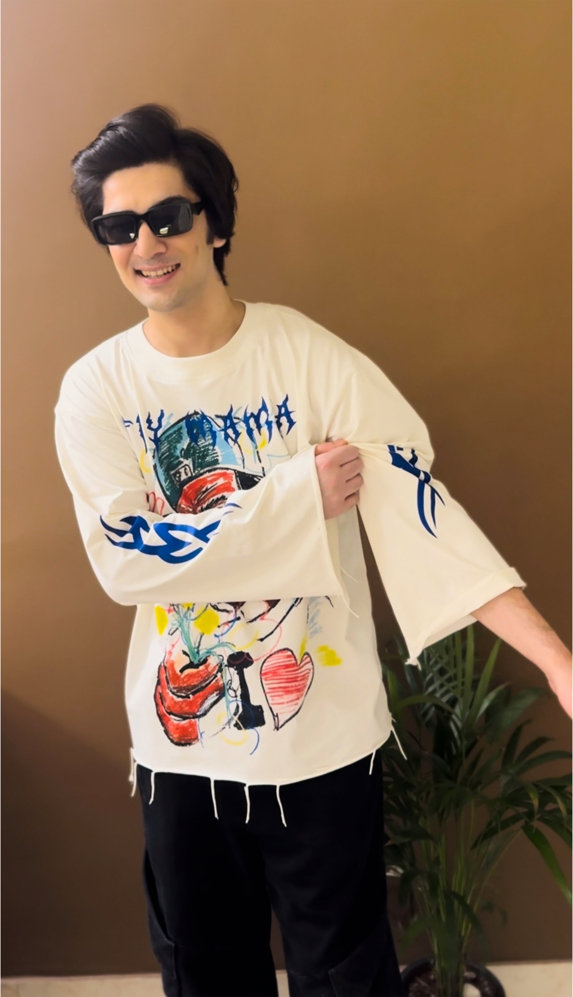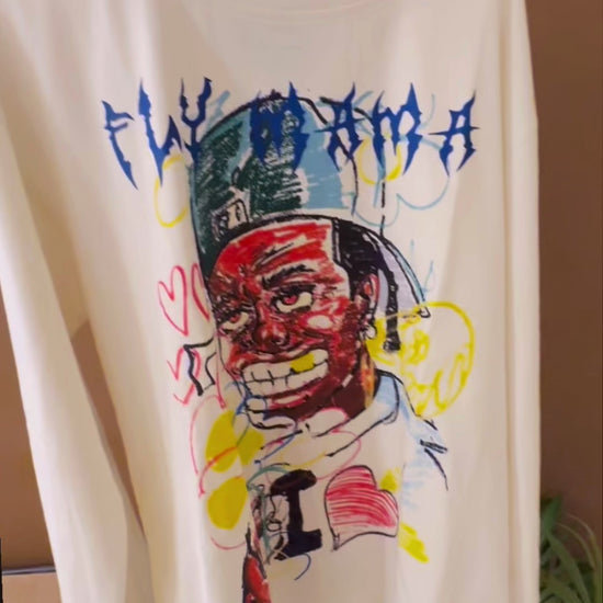 Step into the haze of color and chaos. The Dreamhaze Sweatshirt captures the pulse of street art and the spirit of rebellion — featuring a multi-color abstract illustration of a bold character with gold grills and vivid expression, layered with a distinct Fly Mama logo on top. Crafted from luxurious 100% cotton with an oversized fit, wide sleeves, and raw open-thread detailing, it’s made for those who live loud but stay effortless.