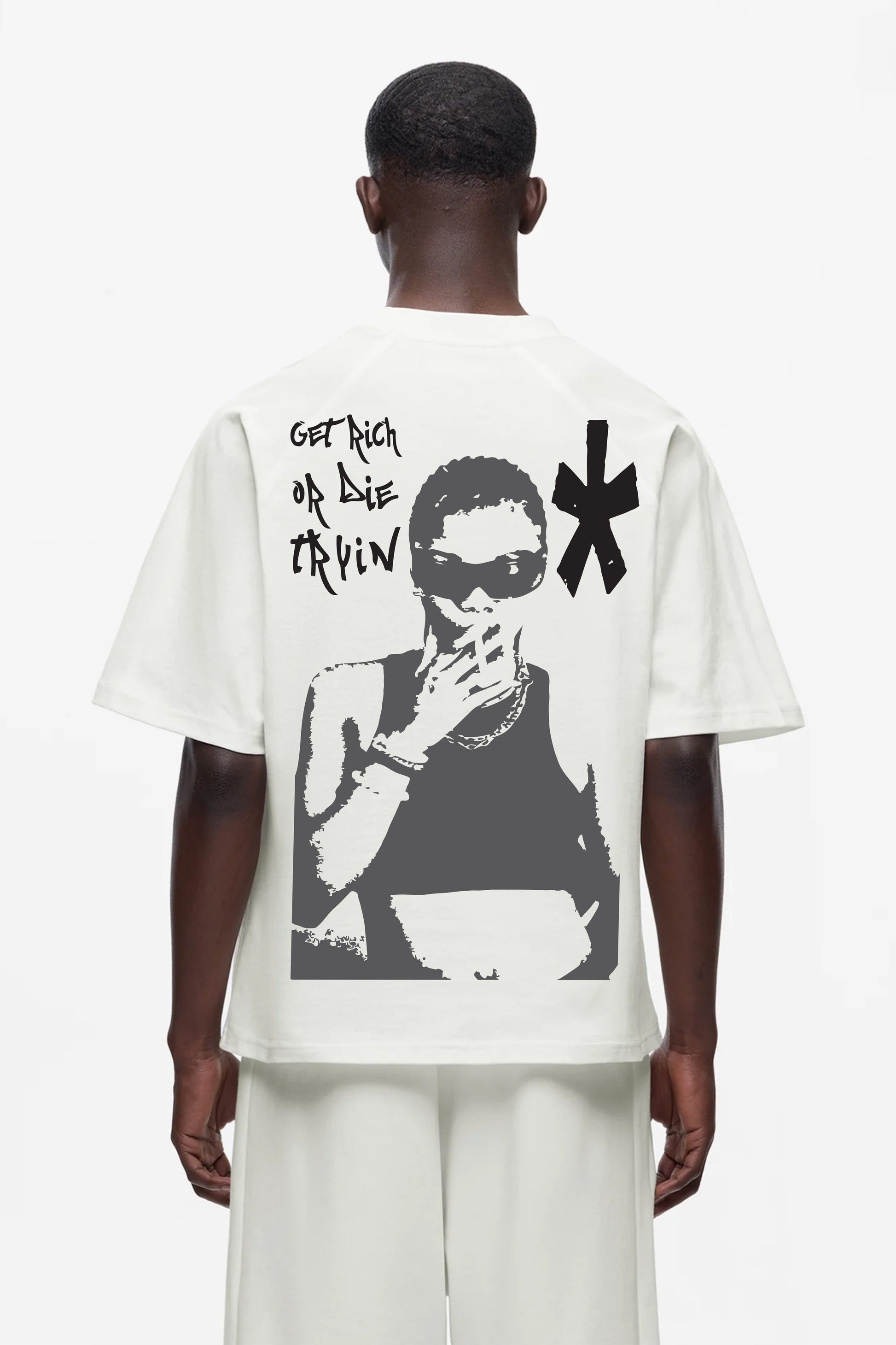 Rich Reckless T-Shirt – A bold tribute to the relentless dreamers. This grey-toned tee features a striking dark brown FM in front, echoing Fly Mama’s fearless energy. On the back, a rebellious, ambitious figure comes alive—a reckless hustler chasing greatness—smoking as he drops the raw truth: “Get rich or die trying.” Paired with an abstract font and cross-like symbol, this design speaks to those who live on the edge and bet everything on their dreams. No limits. No regrets. 💸🔥 #RichReckless #FlyMama