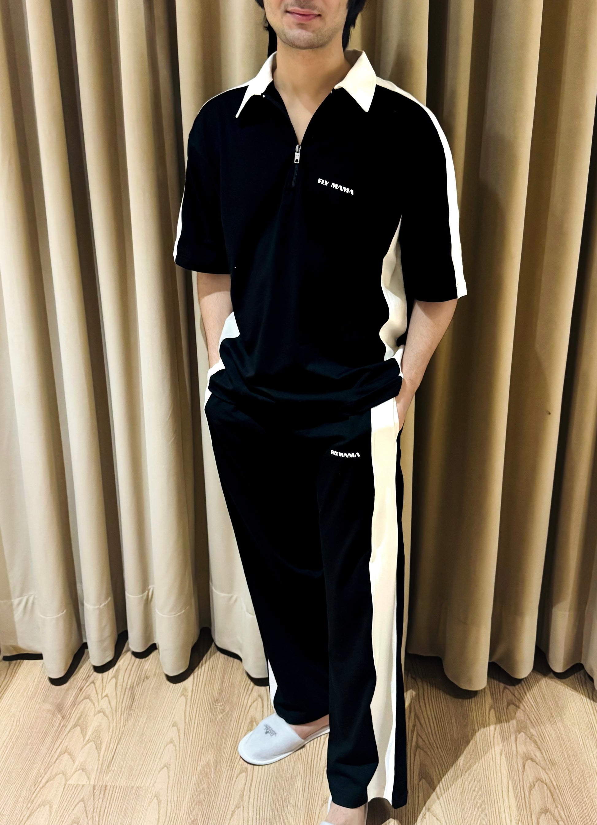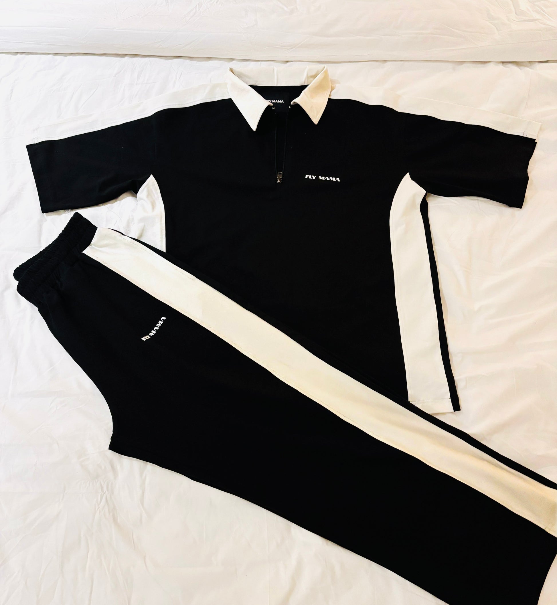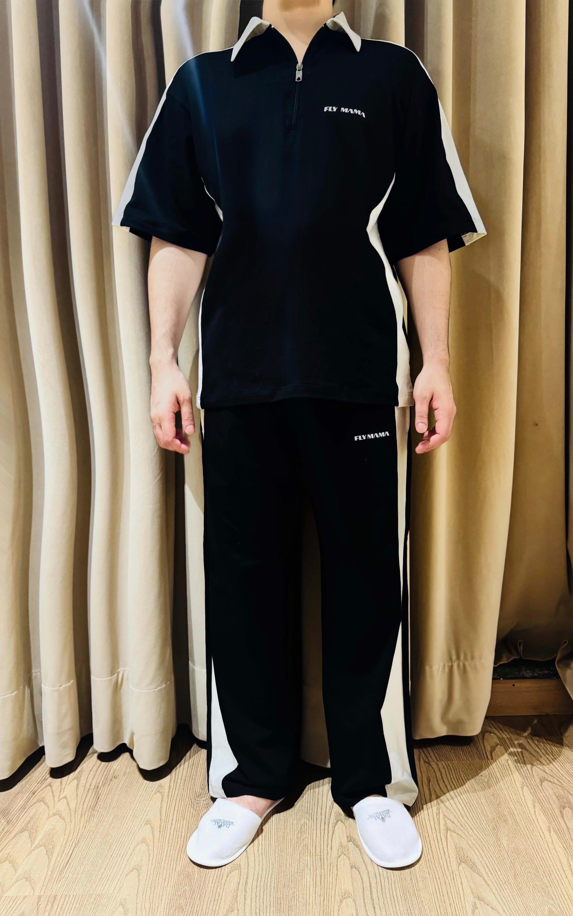 Clean lines. Effortless style. The Symmetry Set is Fly Mama’s take on minimalism done right. Featuring a sleek black collared tee with off-white side stripes, paired with wide-leg lowers in matching black and white symmetry – this co-ord set is designed to give you that aligned, structured look while keeping it laid-back. Topped with a reflective Fly Mama logo on the tee’s right chest, it adds just the right amount of edge. Whether you’re lounging at home or stepping out for a chilled day with your crew, this summer-ready co-ord is your go-to for comfort and cool vibes.