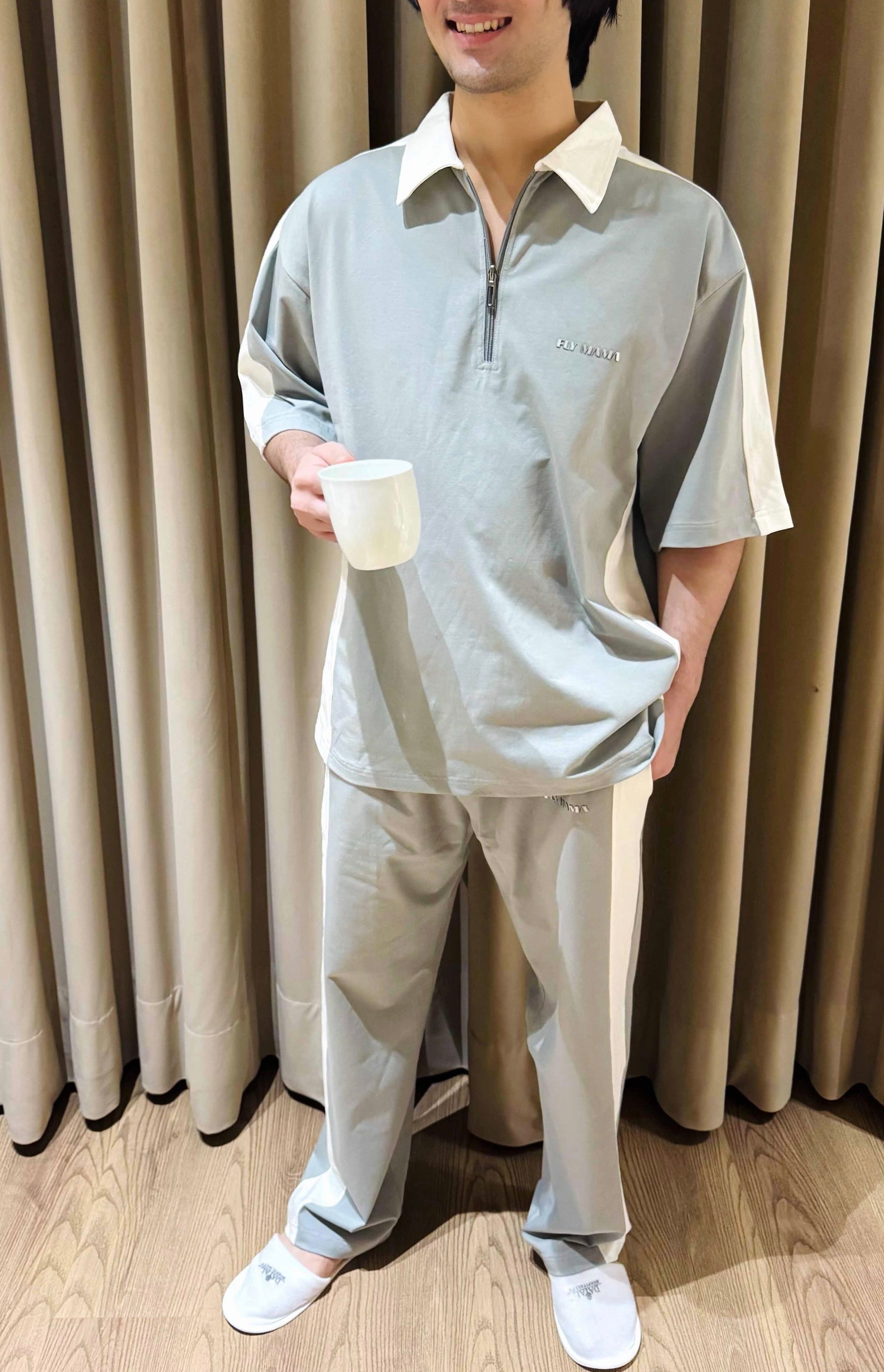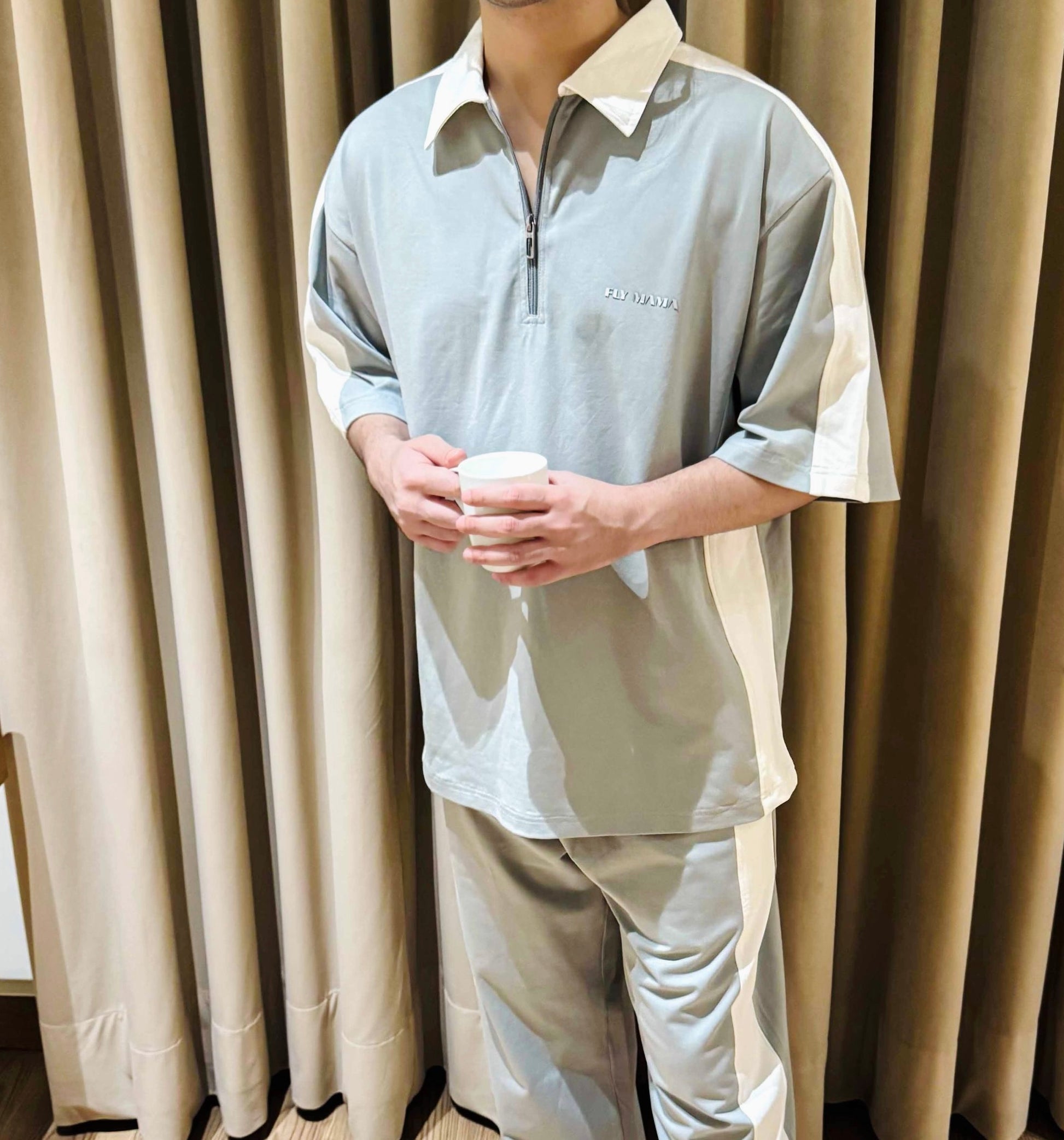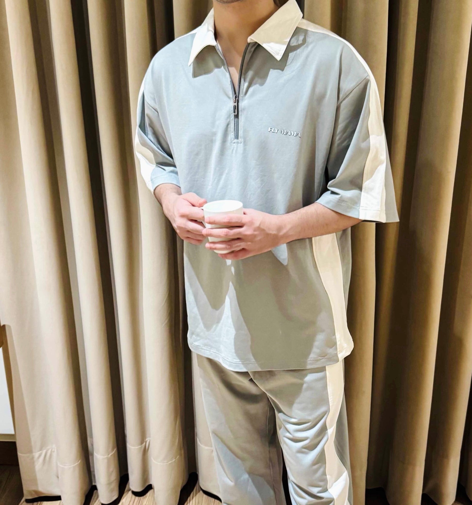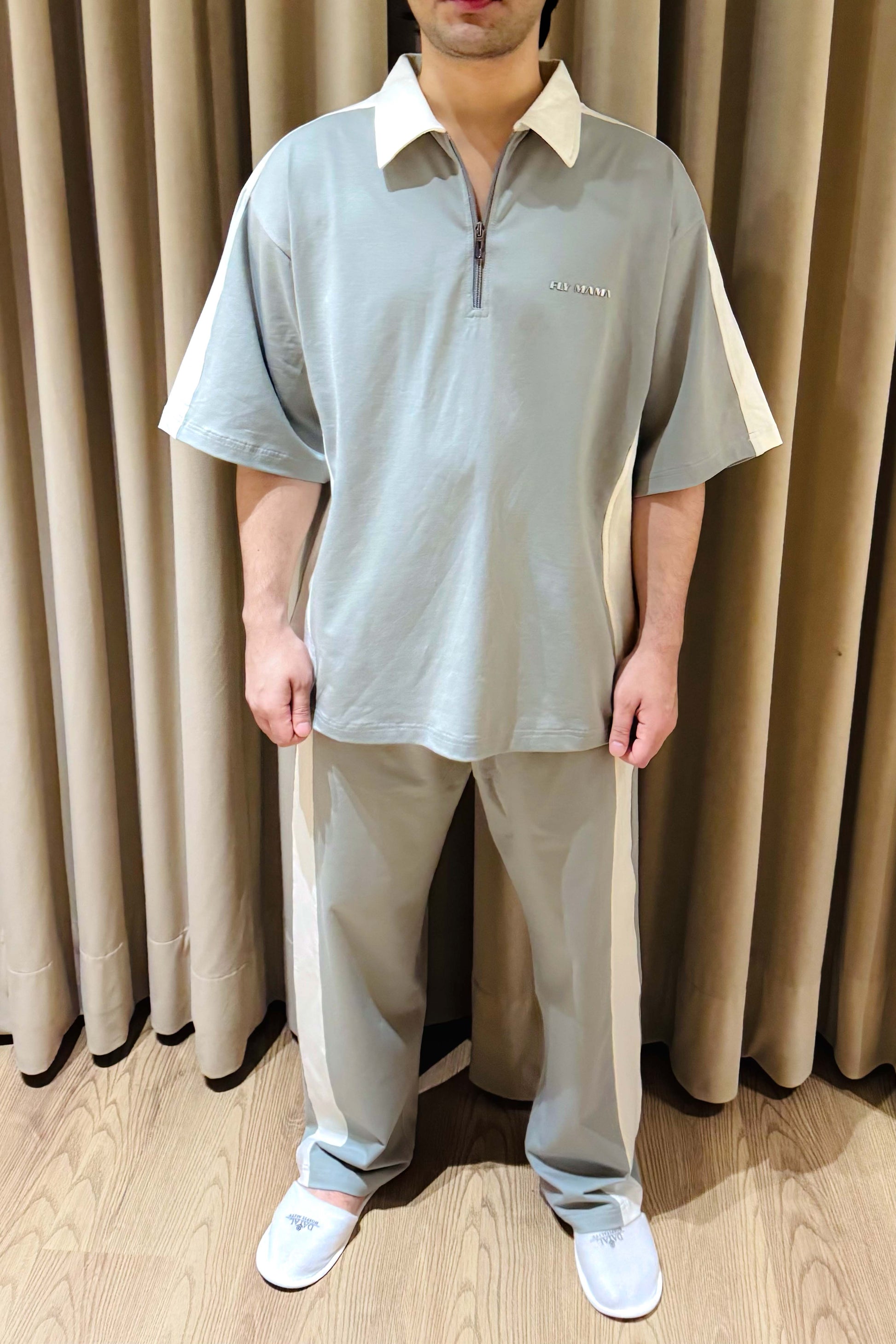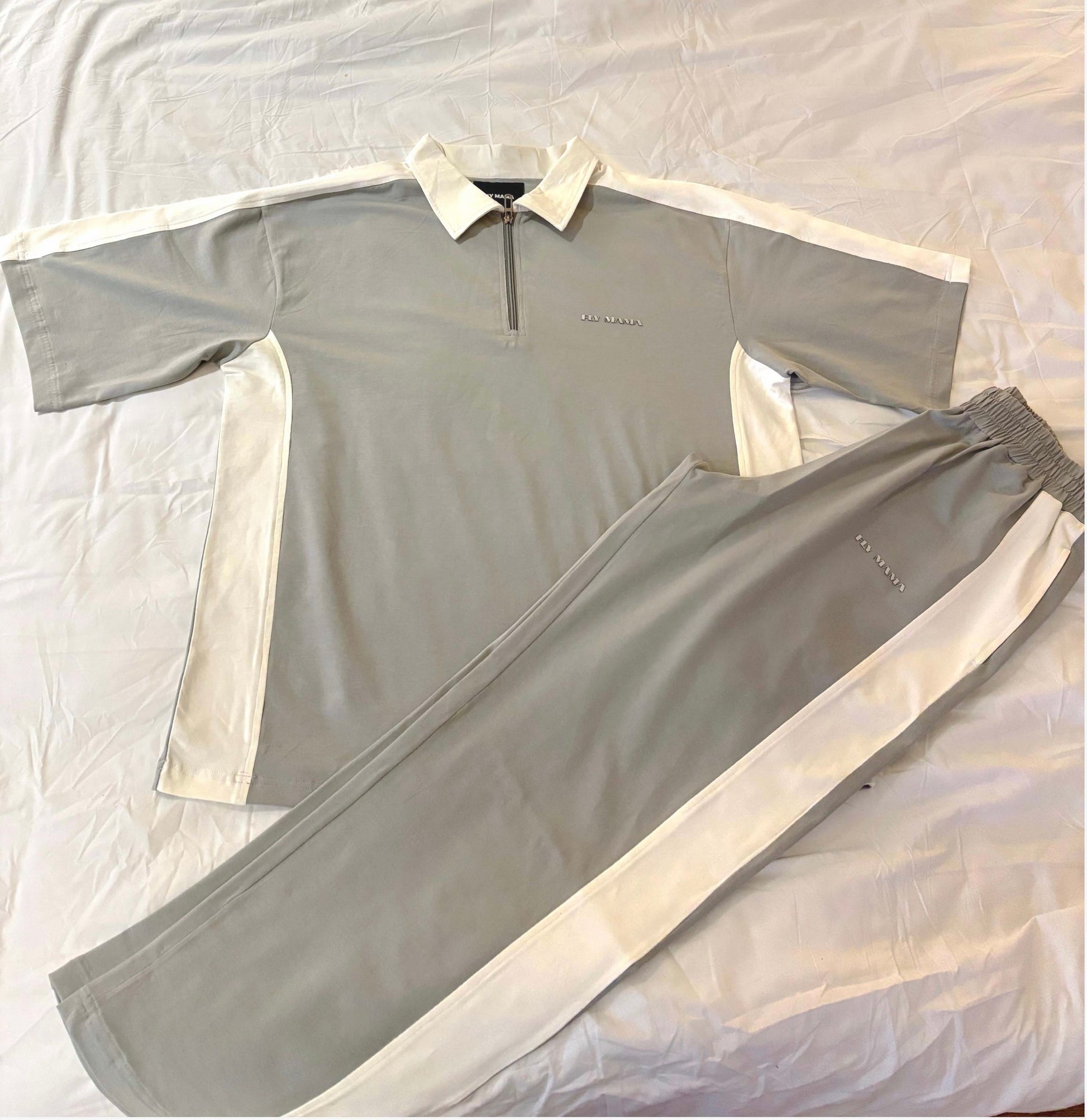 Soft hues meet bold structure in the Symmetry Set – Grey & White. A grey collared t-shirt with off-white stripe detailing, paired with matching lowers, this look is all about balance and quiet confidence. Its reflective Fly Mama logo adds that subtle flex, keeping things cool without trying too hard. Perfect for lounge days or casual hangouts, this co-ord set keeps you looking fresh and feeling comfy all summer long.